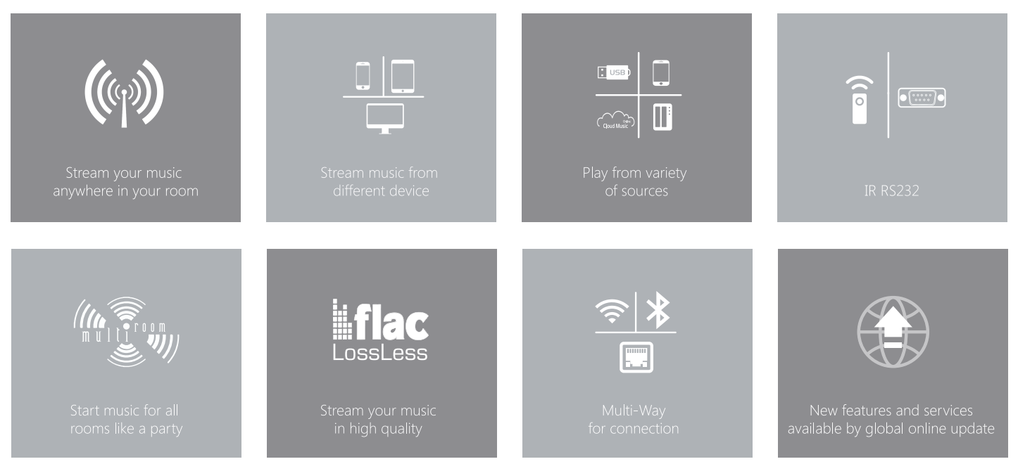 Mutfakta bir radyo istasyonunu ayarlayabilir, çevrimiçi müzik servisinden yatak odasına bir şarkı çalabilir, yerel müziği cep telefonu hafızasından oturma odasına aktarabilirsiniz.
