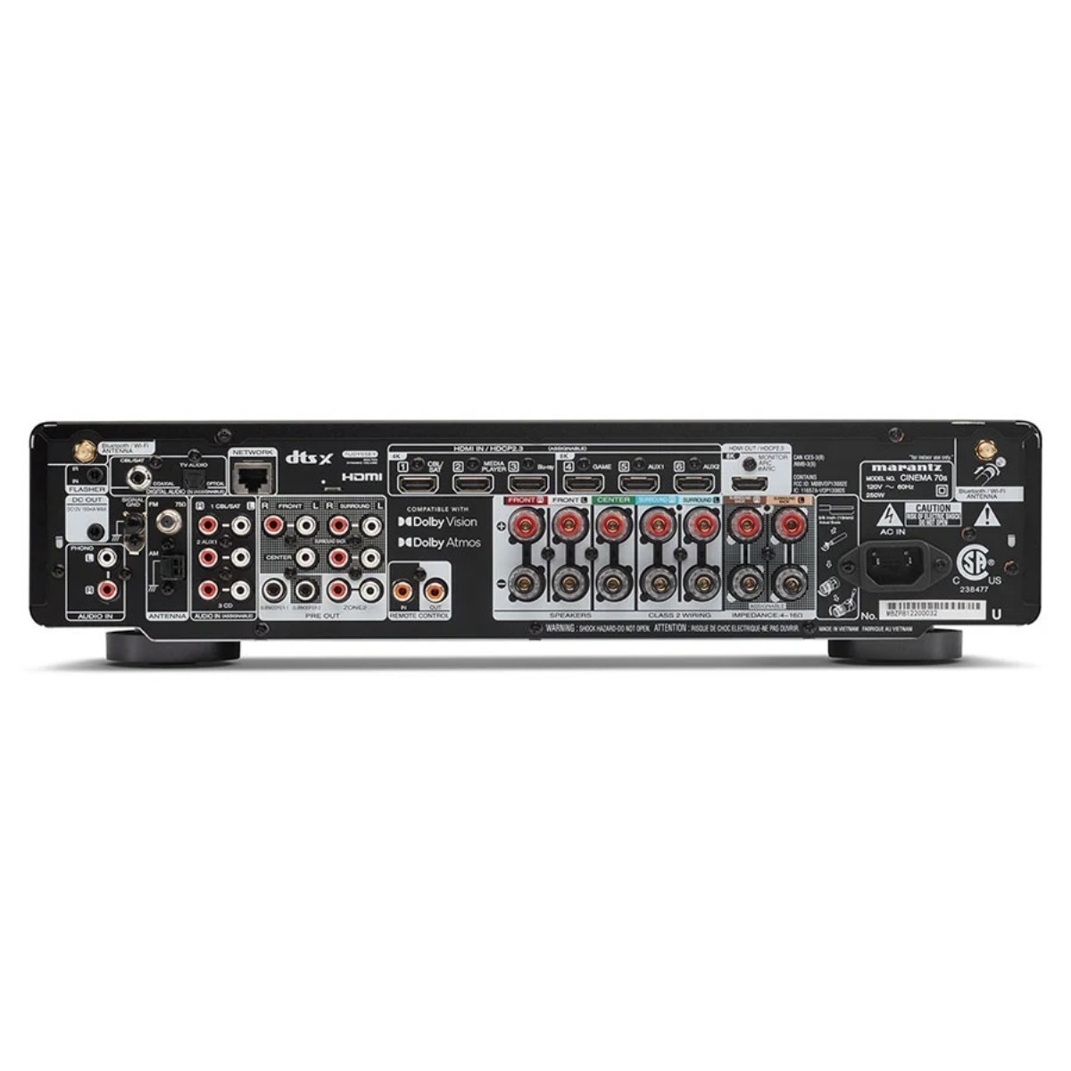 Slimline 7.2 kanal, kanal başına 50 watt amplifikasyon, Dolby Atmos, DTS:X ve 8K Ultra HD ve yerleşik HEOS akışı. CINEMA 70s sağduyulu görünse de oldukça yetenekli bir AV alıcısı olmaya devam ediyor.
