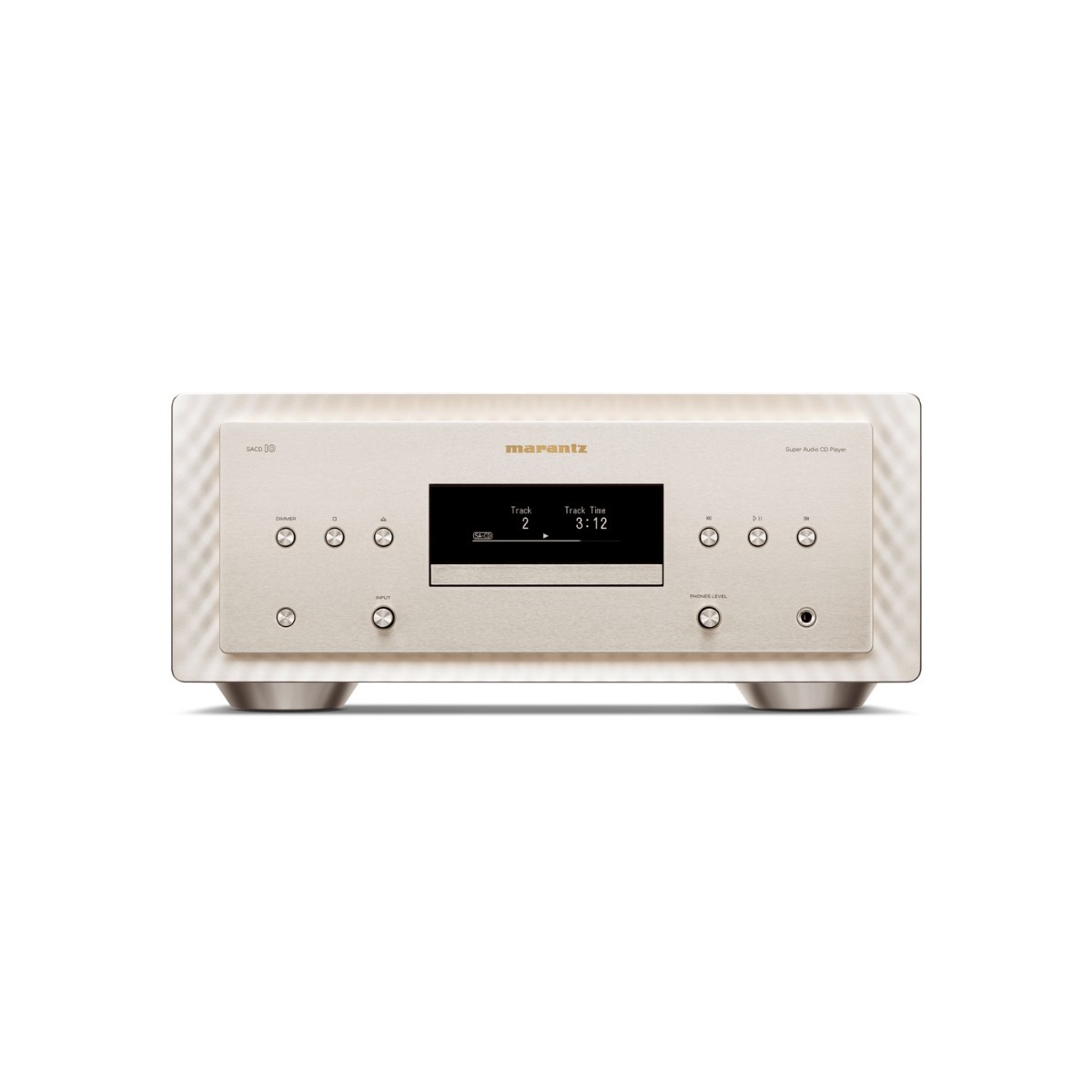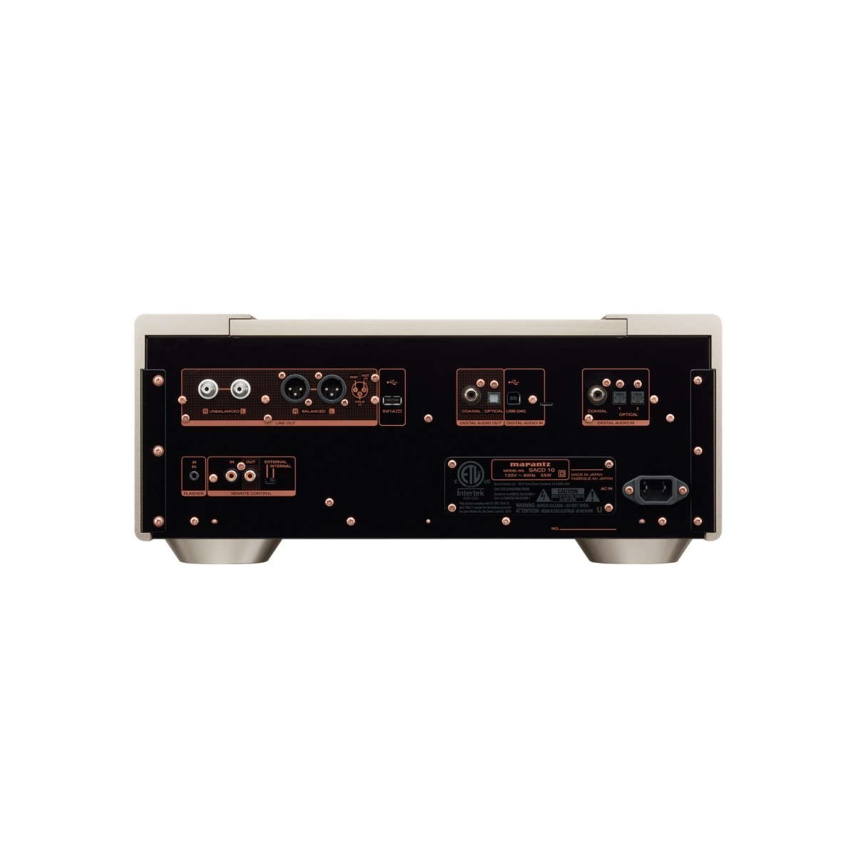 Fırçalanmış alüminyum kontrol yüzeyi, döner yüzey detayları, kalın kesitli alüminyum yapı ve bakır kaplamalı üç katmanlı şasisiyle SACD 10, kendi sınıfında benzersizdir. Her ortama uyum sağlayacak şekilde Marantz Siyahı ve Marantz Şampanyası olmak üzere iki renk seçeneğiyle sunulmaktadır.