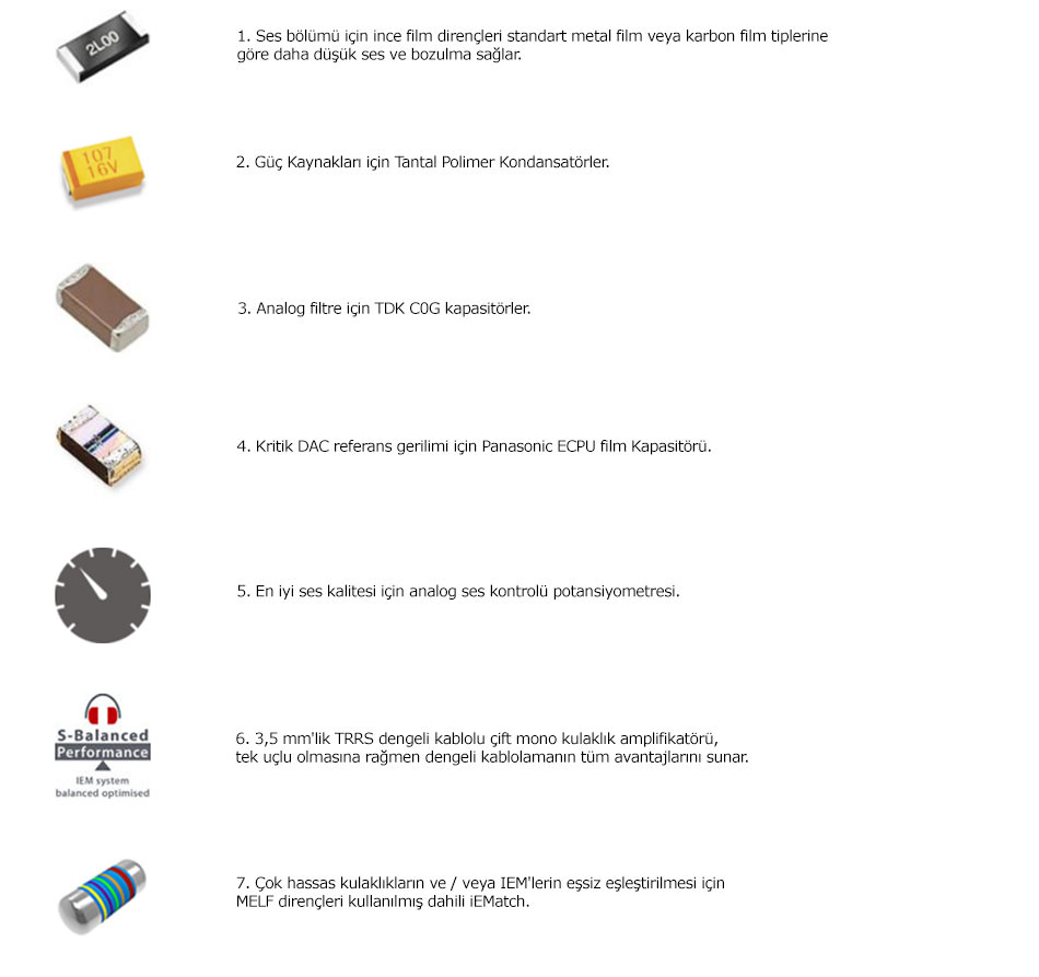 | Ampli: | Dual Mono 2 x 285mW Direct Drive, en yüksek kalite içi çıkış kapasitörsüz |